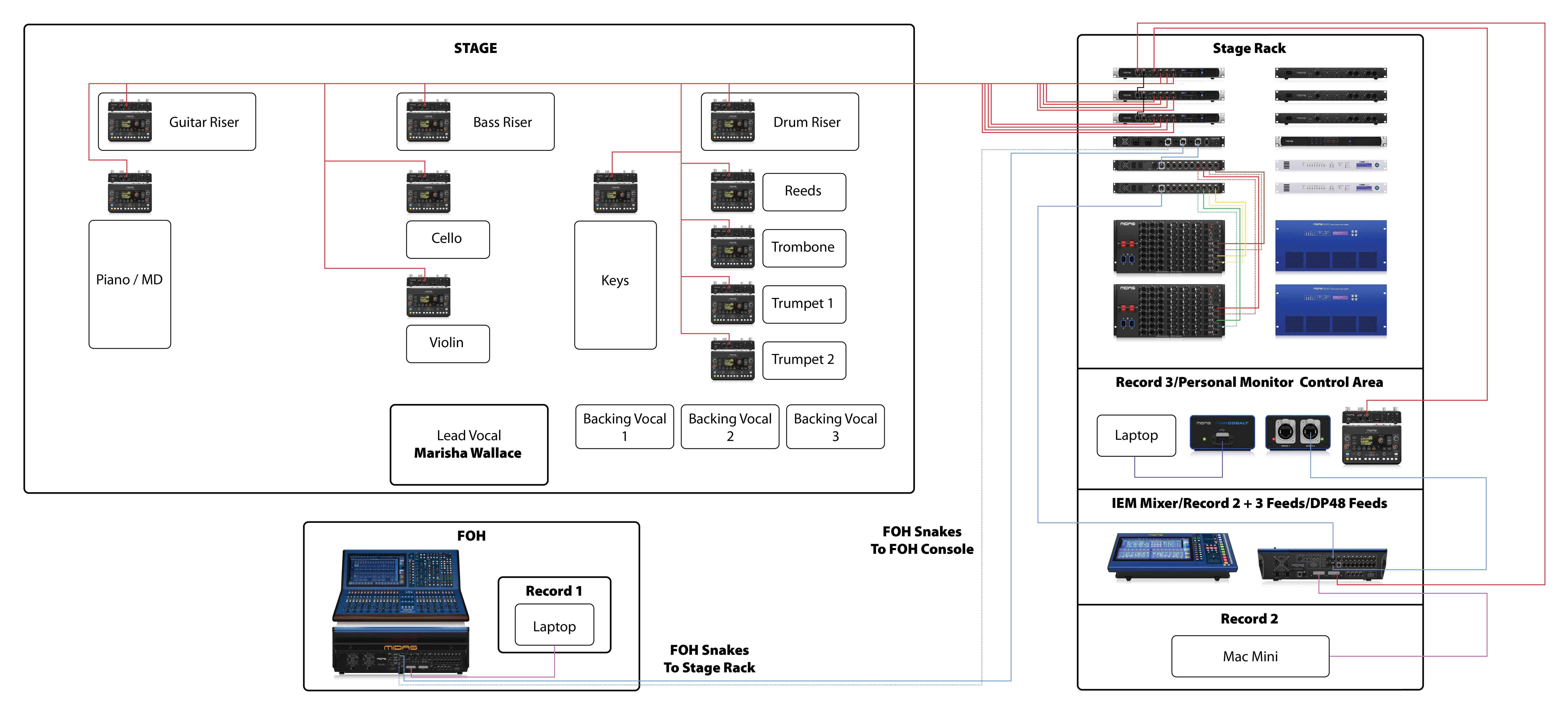 Console: Midas HD Air IEMs: Four vocalists (Marisha + 3 BVs) Recording:
