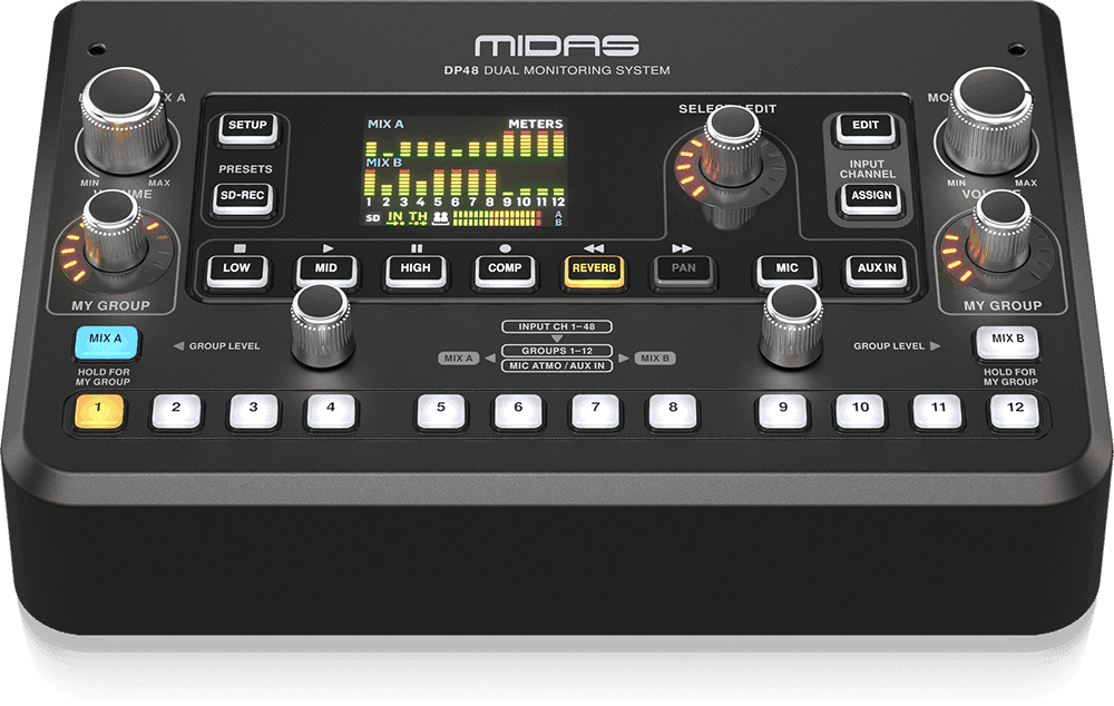 Musicians were accustomed to other personal monitoring systems, so integrating a new 12-position Midas DP48 system required careful setup and prep to ensure their ease of use
